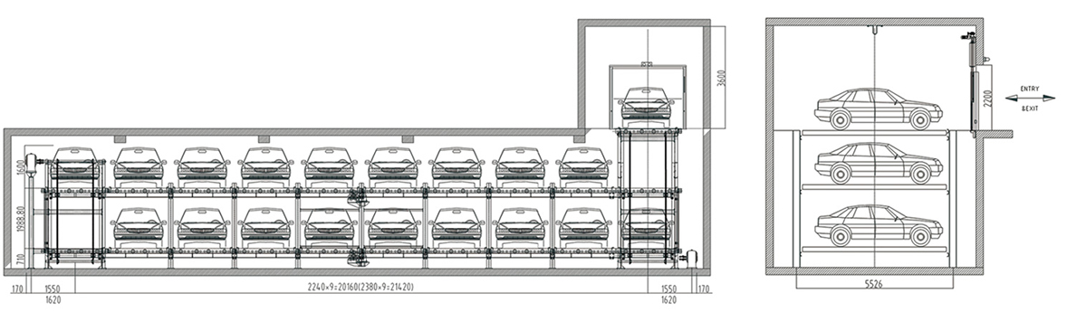 可在任意層進出車,汽車進出口可地面,可地下,節省空間